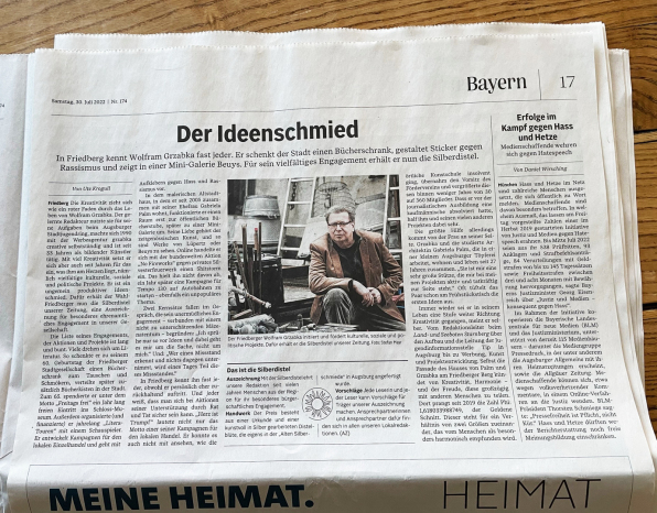 „Der Ideenschmied” titelte die Augsburger Allgemeine im Bayernteil und verlieh Wolfram Grzabka die „Silberdistel - für besonderes bürgerschaftliches Engagement”. Redakteurin Ute Krogull verfasste das ausführliche und äußerst gelungene Portrait. Herzlichen Dank! > Hier: Der Artikel in der Augsburger Allgemeine vom 30. Juli 2022