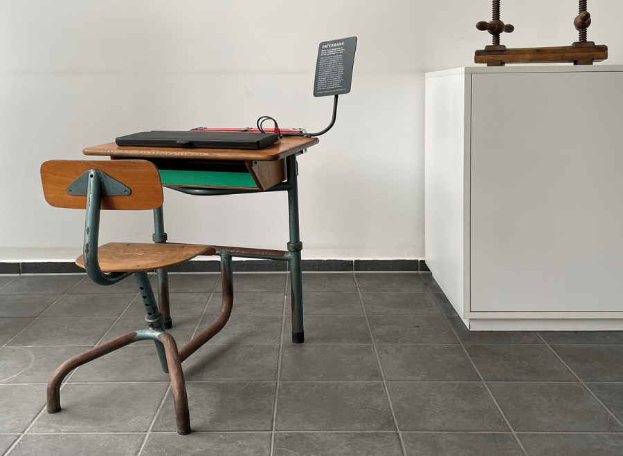 Die Arbeit „Datenbank” von Wolfram Grzabka aus der Werkreihe „Kunst trägt” steht ab sofort im Foyer des Augsburger Druck- und Medienunternehmens deVega. Mitarbeiter und Kunden können das Objekt jetzt nutzen, um „ganz Persönliches und Geheimes, die innersten Gedanken, oder was Sie sich schon immer mal von der Seele schreiben wollten, dort einzutippen”, so die Kunsthistorikerin Dr. Carmen Roll in ihrer Beschreibung. Der mit der „Eingabe-Einheit" verbundene Massenspeicher löscht übrigens im gleichen Moment der Eingabe die Daten sofort wieder… > Mehr dazu