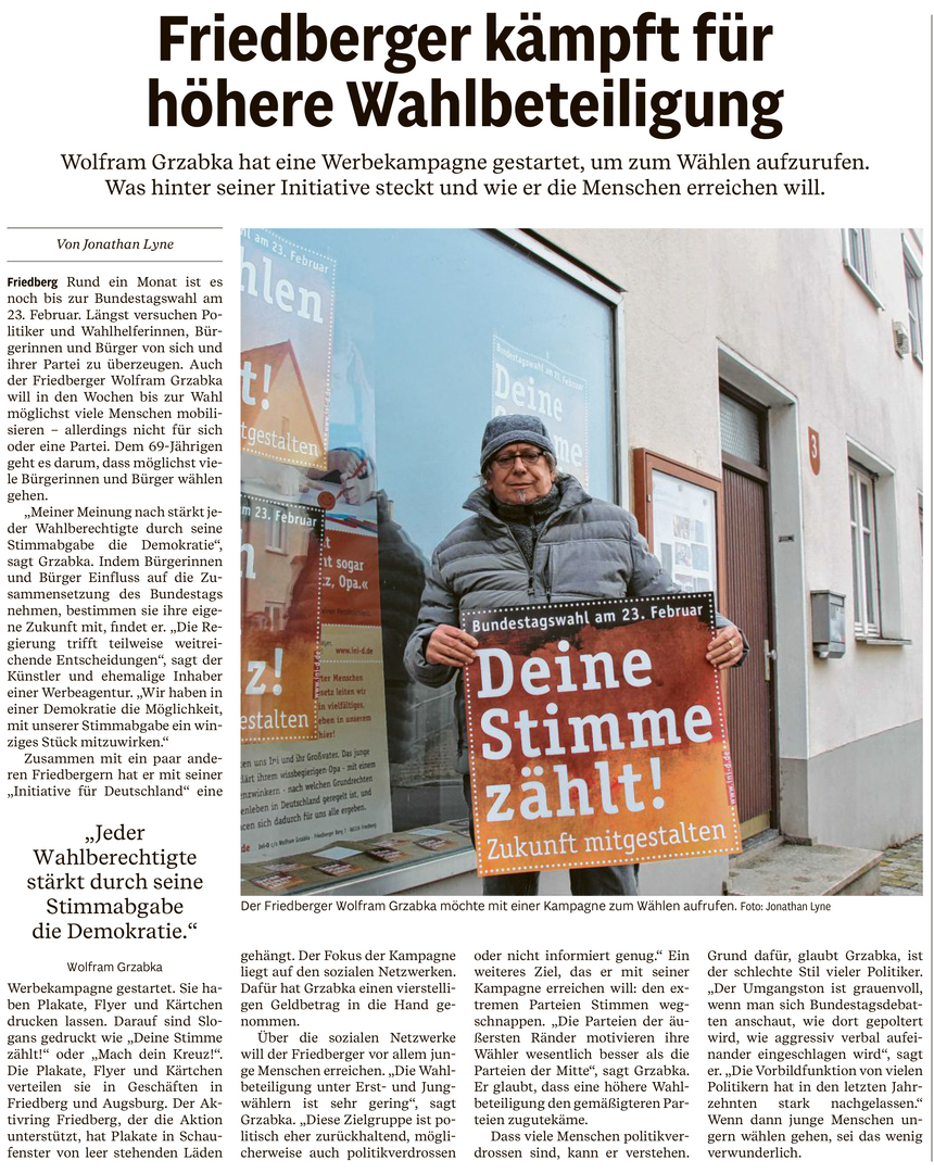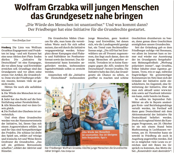 "Ein Friedberger Aufruf gegen Hass" titelte die Friedberger Allgemeine in ihrer Wochenendausgabe, 5. März, Seite 1, und berichtet ausführlich über den Aufruf